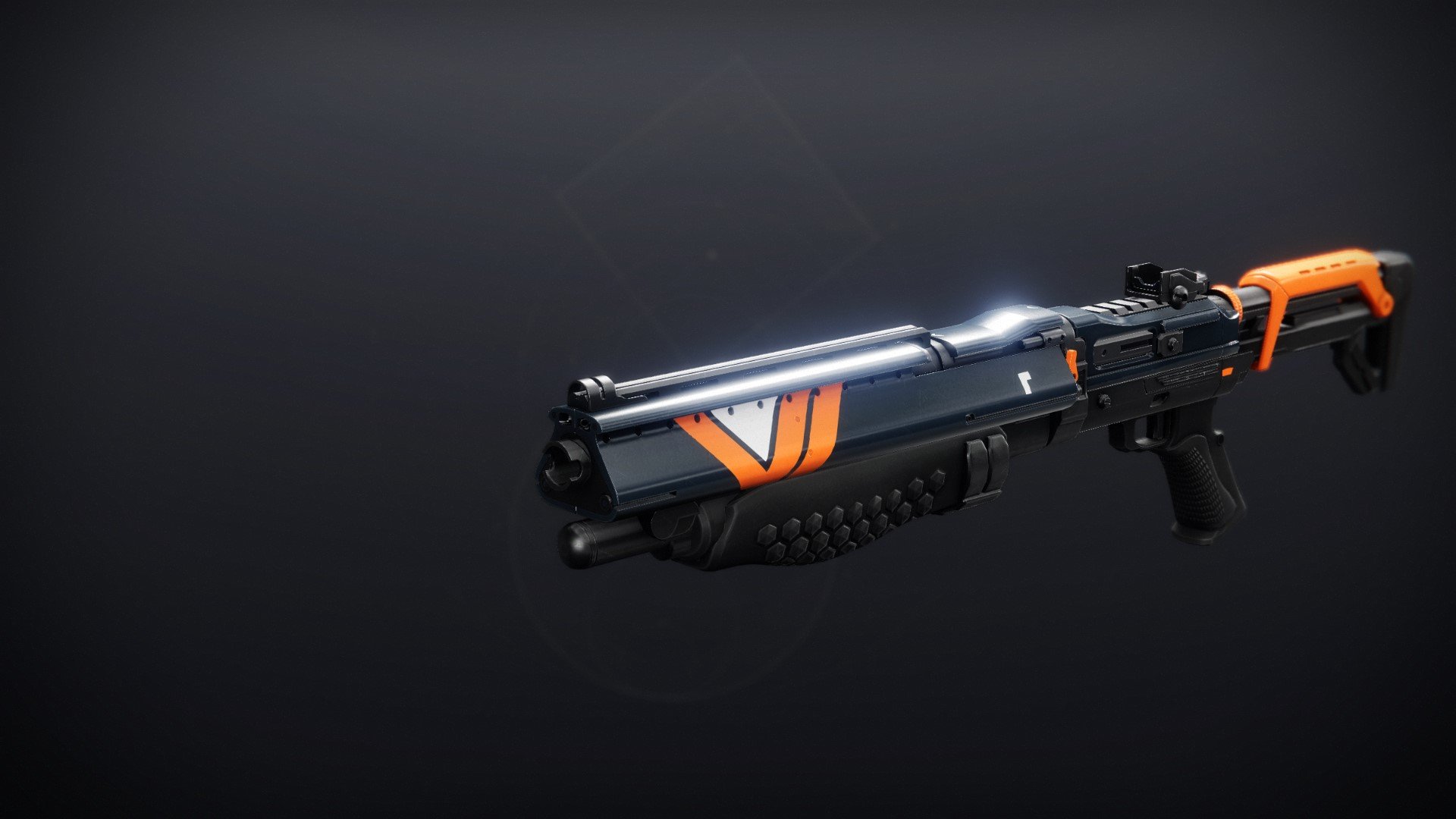 This image is a screenshot of a weapon from the Destiny series of first-person shooter video games developed by Bungie Studios and published by Bungie or Activision. It falls under the screenshot category for a copyrighted computer game or video game, and the copyright for it is most likely held by the company that developed the game. It is believed that the use of a limited number of web-resolution screenshots: