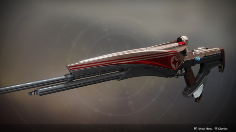 The Exotic Weapon, "Polaris Lance", with the Exotic Ornament, "The Bray Legacy"