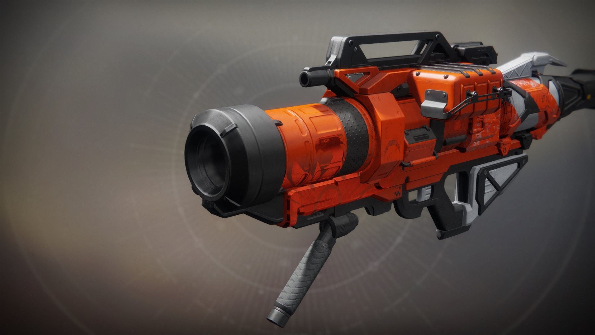 This image is a screenshot of a weapon from the Destiny series of first-person shooter video games developed by Bungie Studios and published by Bungie or Activision. It falls under the screenshot category for a copyrighted computer game or video game, and the copyright for it is most likely held by the company that developed the game. It is believed that the use of a limited number of web-resolution screenshots: