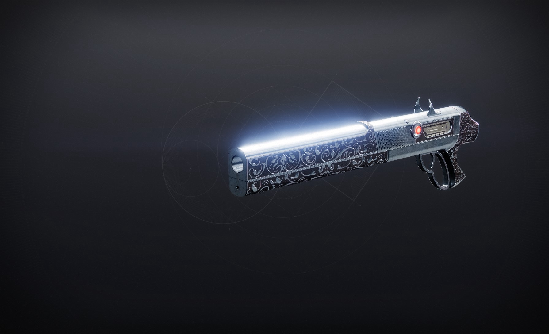 This image is a screenshot of a weapon from the Destiny series of first-person shooter video games developed by Bungie Studios and published by Bungie or Activision. It falls under the screenshot category for a copyrighted computer game or video game, and the copyright for it is most likely held by the company that developed the game. It is believed that the use of a limited number of web-resolution screenshots: