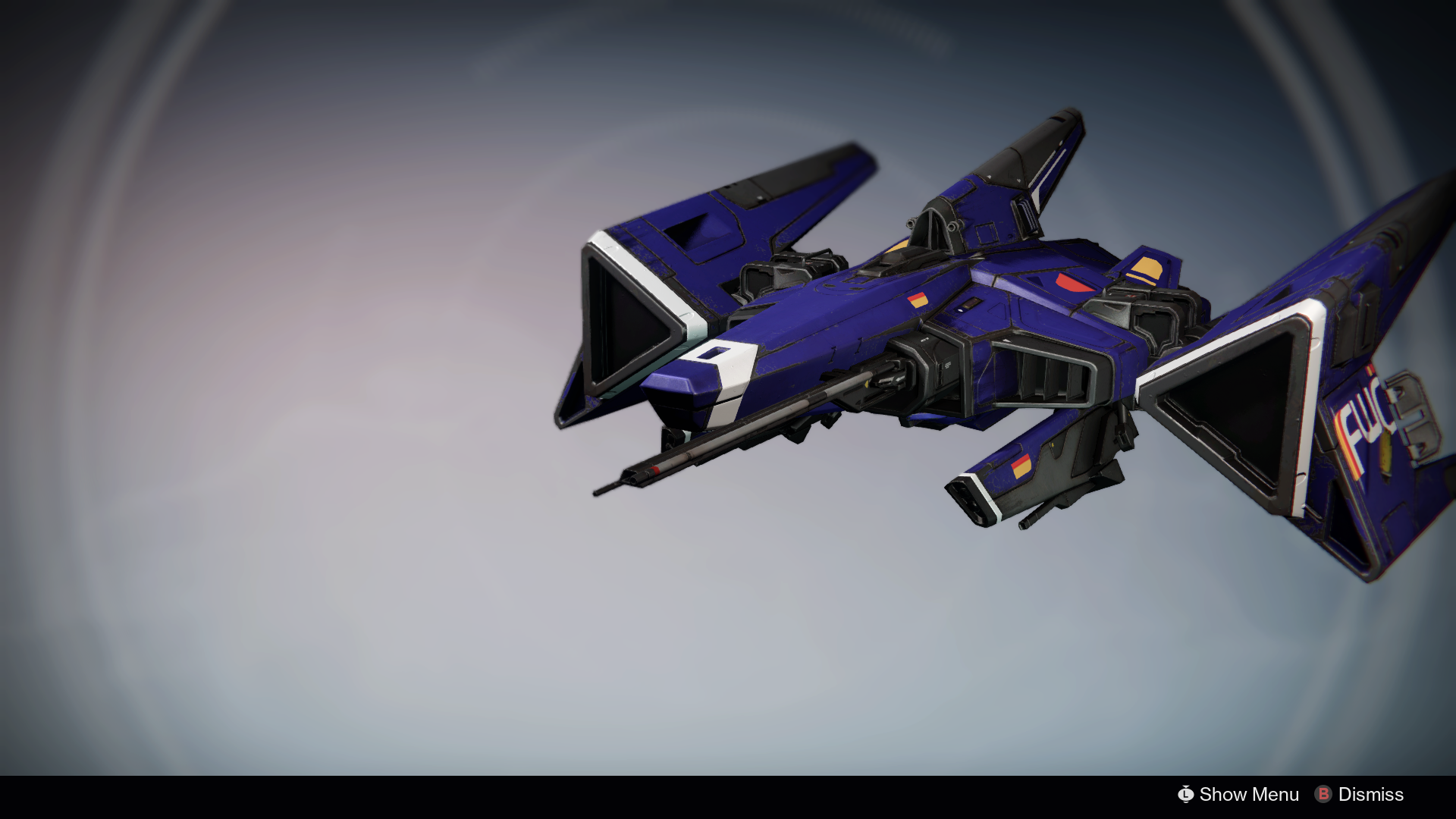 This image is a screenshot of a vehicle from the Destiny series of first-person shooter video games developed by Bungie Studios and published by Bungie or Activision. It falls under the screenshot category for a copyrighted computer game or video game, and the copyright for it is most likely held by the company that developed the game. It is believed that the use of a limited number of web-resolution screenshots: