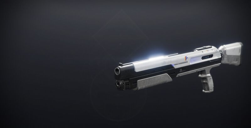 This image is a screenshot of a weapon from the Destiny series of first-person shooter video games developed by Bungie Studios and published by Bungie or Activision. It falls under the screenshot category for a copyrighted computer game or video game, and the copyright for it is most likely held by the company that developed the game. It is believed that the use of a limited number of web-resolution screenshots: