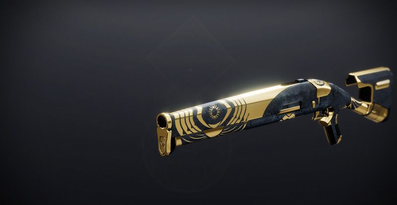 This image is a screenshot of a weapon from the Destiny series of first-person shooter video games developed by Bungie Studios and published by Bungie or Activision. It falls under the screenshot category for a copyrighted computer game or video game, and the copyright for it is most likely held by the company that developed the game. It is believed that the use of a limited number of web-resolution screenshots: