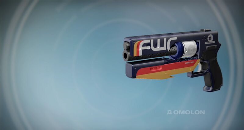 This image is a screenshot of a weapon from the Destiny series of first-person shooter video games developed by Bungie Studios and published by Bungie or Activision. It falls under the screenshot category for a copyrighted computer game or video game, and the copyright for it is most likely held by the company that developed the game. It is believed that the use of a limited number of web-resolution screenshots: