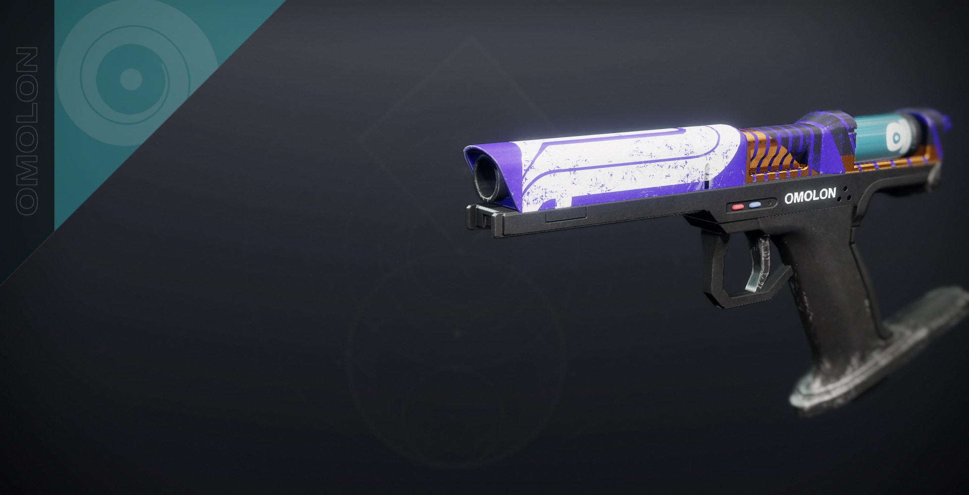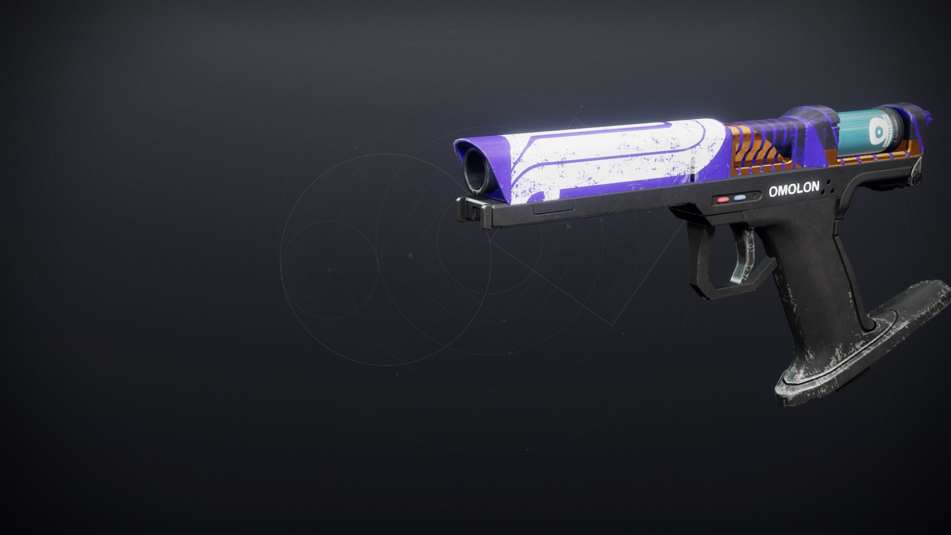 This image is a screenshot of a weapon from the Destiny series of first-person shooter video games developed by Bungie Studios and published by Bungie or Activision. It falls under the screenshot category for a copyrighted computer game or video game, and the copyright for it is most likely held by the company that developed the game. It is believed that the use of a limited number of web-resolution screenshots: