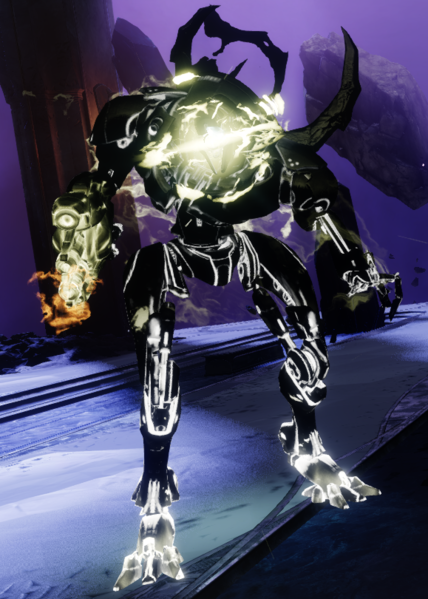 This image is a screenshot of a character or AI unit from the Destiny series of first-person shooter video games developed by Bungie Studios and published by Bungie or Activision. It falls under the screenshot category for a copyrighted computer game or video game, and the copyright for it is most likely held by the company that developed the game. It is believed that the use of a limited number of web-resolution screenshots:
