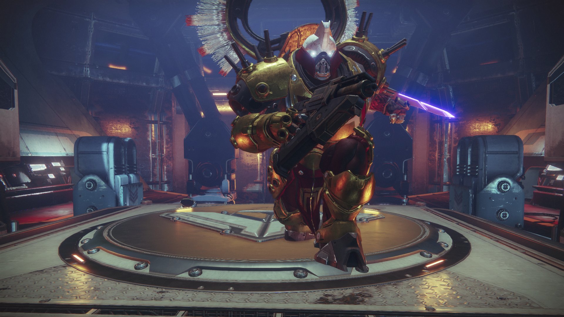 This image is a screenshot of a character or AI unit from the Destiny series of first-person shooter video games developed by Bungie Studios and published by Bungie or Activision. It falls under the screenshot category for a copyrighted computer game or video game, and the copyright for it is most likely held by the company that developed the game. It is believed that the use of a limited number of web-resolution screenshots: