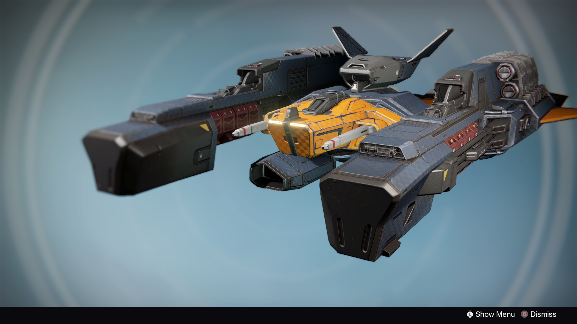This image is a screenshot of a vehicle from the Destiny series of first-person shooter video games developed by Bungie Studios and published by Bungie or Activision. It falls under the screenshot category for a copyrighted computer game or video game, and the copyright for it is most likely held by the company that developed the game. It is believed that the use of a limited number of web-resolution screenshots: