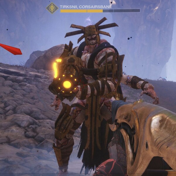This image is a screenshot of a character or AI unit from the Destiny series of first-person shooter video games developed by Bungie Studios and published by Bungie or Activision. It falls under the screenshot category for a copyrighted computer game or video game, and the copyright for it is most likely held by the company that developed the game. It is believed that the use of a limited number of web-resolution screenshots: