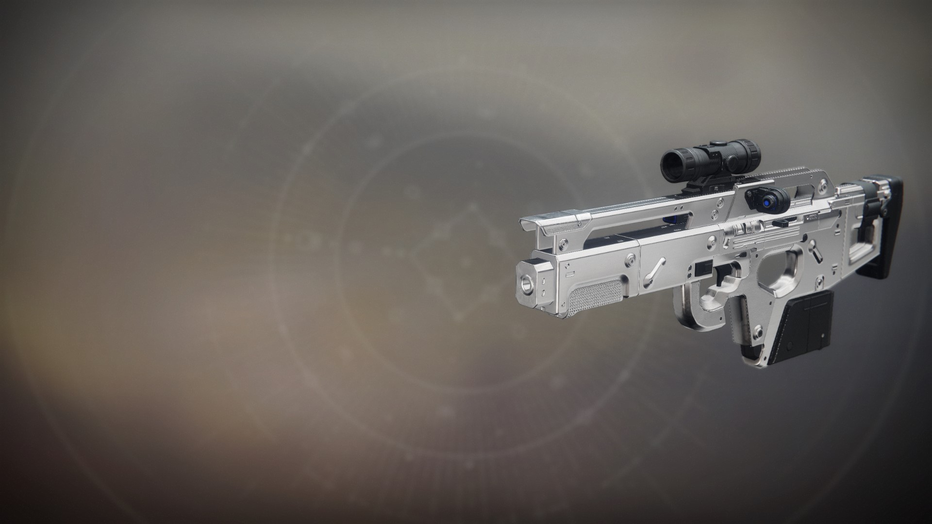 This image is a screenshot of a weapon from the Destiny series of first-person shooter video games developed by Bungie Studios and published by Bungie or Activision. It falls under the screenshot category for a copyrighted computer game or video game, and the copyright for it is most likely held by the company that developed the game. It is believed that the use of a limited number of web-resolution screenshots: