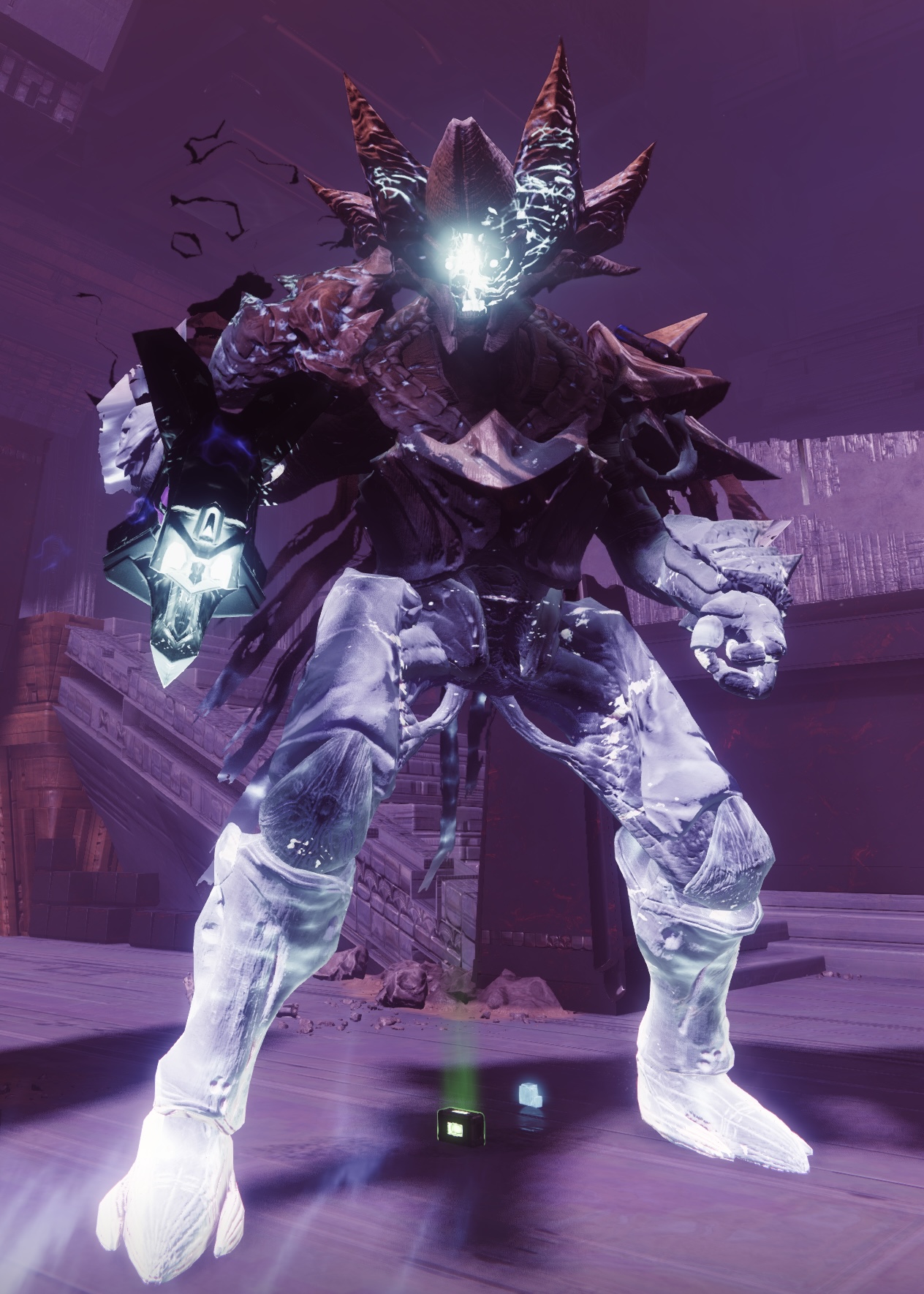 This image is a screenshot of a character or AI unit from the Destiny series of first-person shooter video games developed by Bungie Studios and published by Bungie or Activision. It falls under the screenshot category for a copyrighted computer game or video game, and the copyright for it is most likely held by the company that developed the game. It is believed that the use of a limited number of web-resolution screenshots: