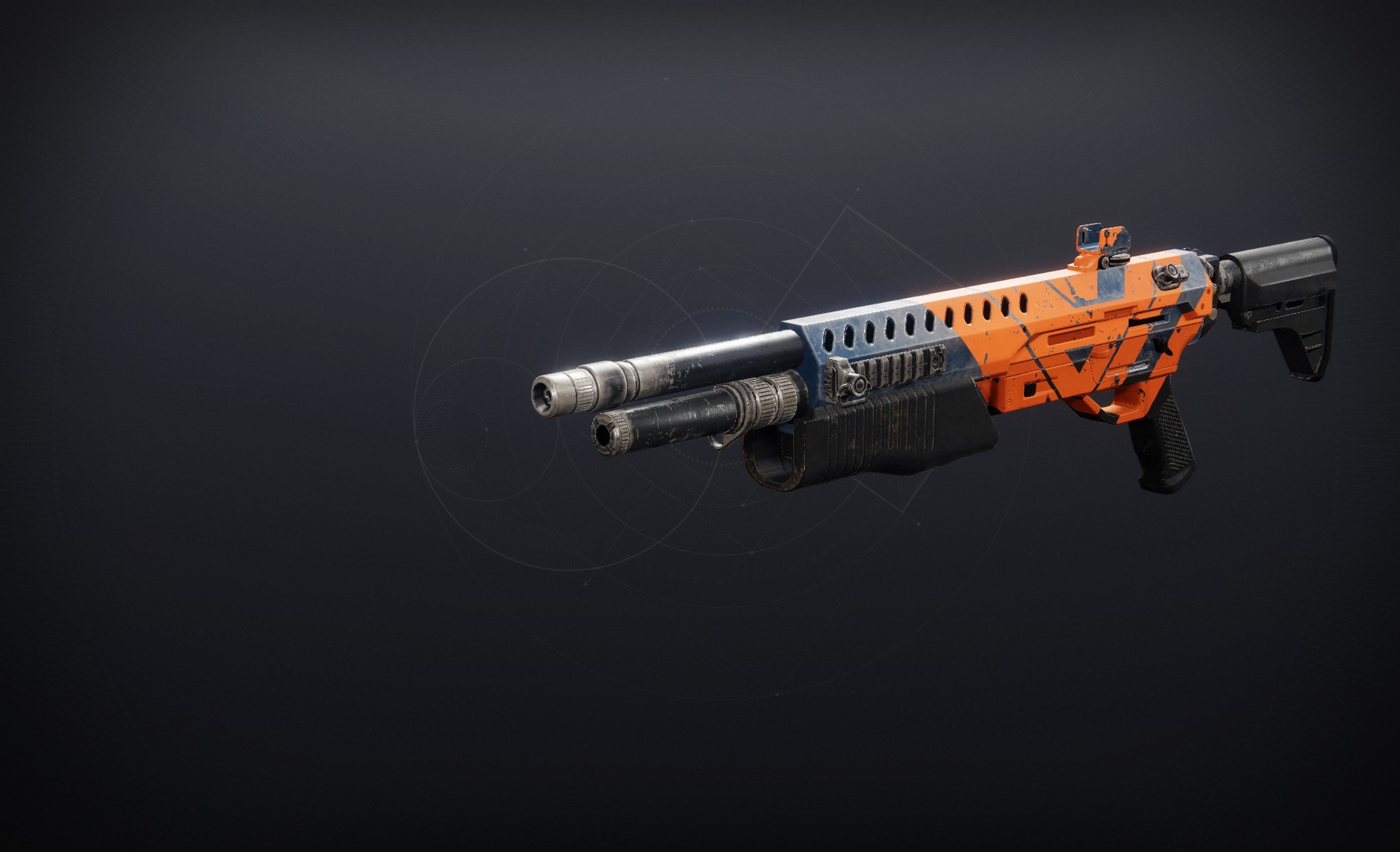 This image is a screenshot of a weapon from the Destiny series of first-person shooter video games developed by Bungie Studios and published by Bungie or Activision. It falls under the screenshot category for a copyrighted computer game or video game, and the copyright for it is most likely held by the company that developed the game. It is believed that the use of a limited number of web-resolution screenshots: