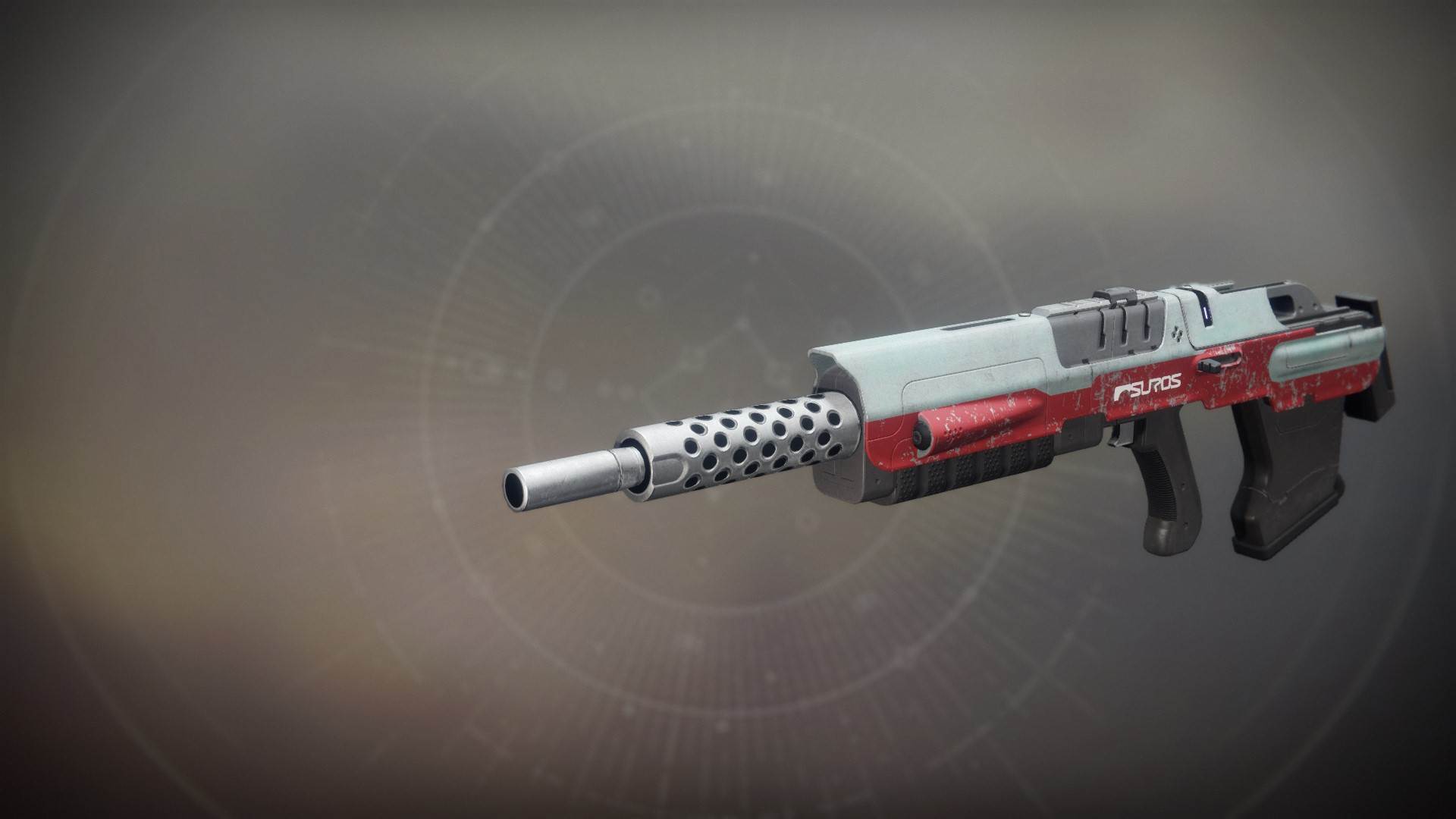 This image is a screenshot of a weapon from the Destiny series of first-person shooter video games developed by Bungie Studios and published by Bungie or Activision. It falls under the screenshot category for a copyrighted computer game or video game, and the copyright for it is most likely held by the company that developed the game. It is believed that the use of a limited number of web-resolution screenshots: