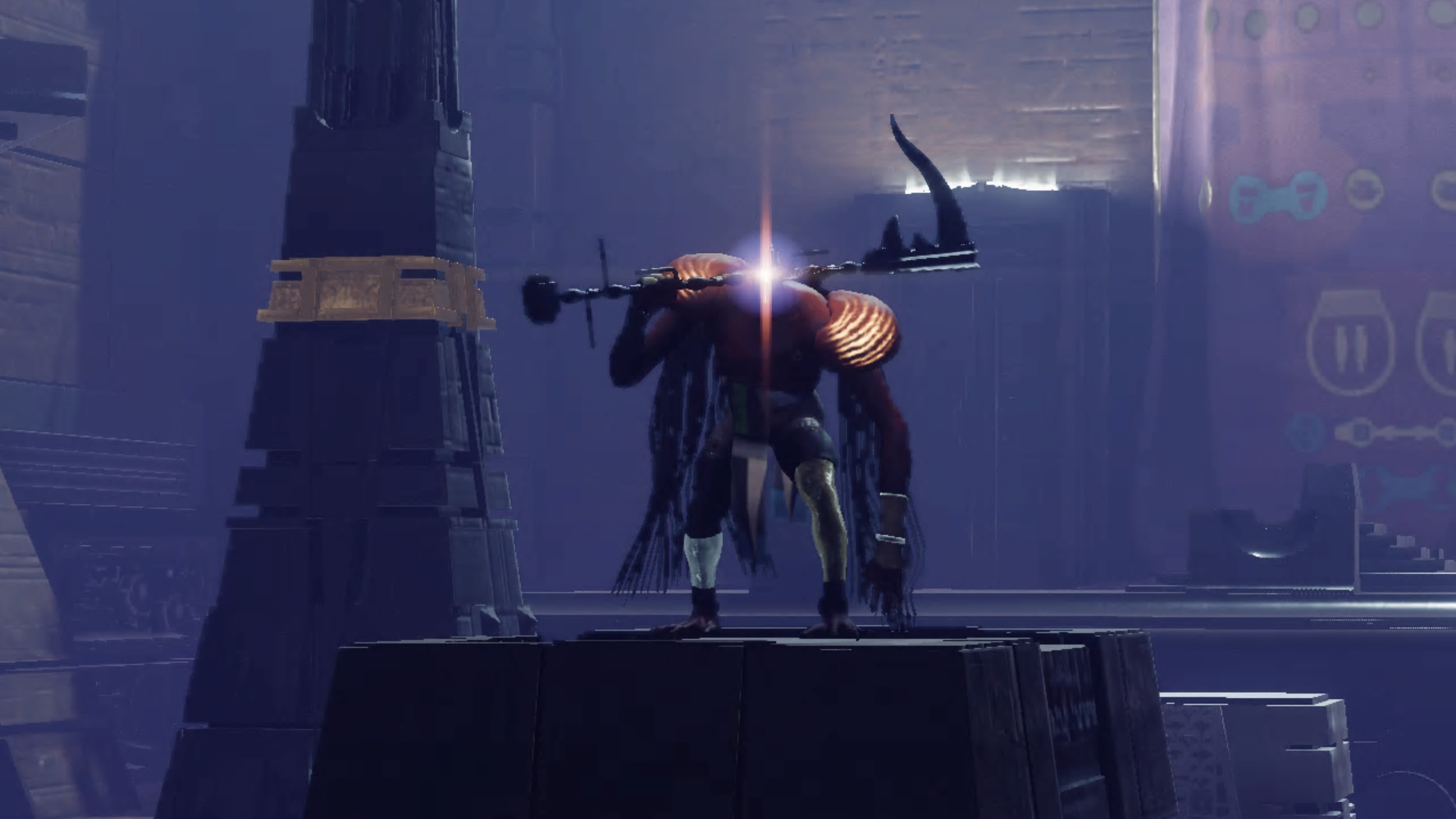 This image is a screenshot of a character or AI unit from the Destiny series of first-person shooter video games developed by Bungie Studios and published by Bungie or Activision. It falls under the screenshot category for a copyrighted computer game or video game, and the copyright for it is most likely held by the company that developed the game. It is believed that the use of a limited number of web-resolution screenshots: