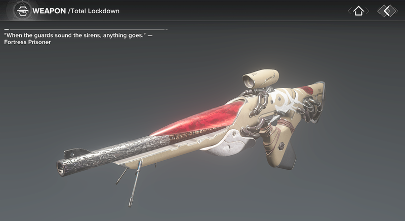This image is a screenshot of a weapon from the Destiny series of first-person shooter video games developed by Bungie Studios and published by Bungie or Activision. It falls under the screenshot category for a copyrighted computer game or video game, and the copyright for it is most likely held by the company that developed the game. It is believed that the use of a limited number of web-resolution screenshots: