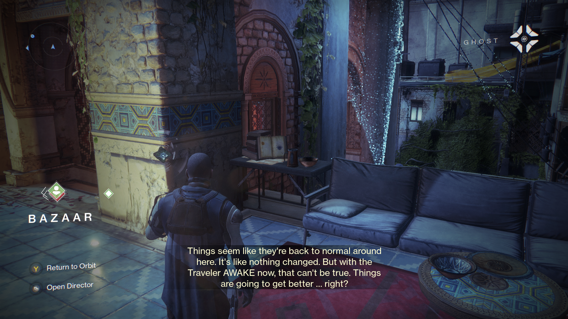 Ghost: "Things seem like they're back to normal around here. It's like nothing's changed. But with the Traveler AWAKE now, that can't be true. Things are going to get better... right?"