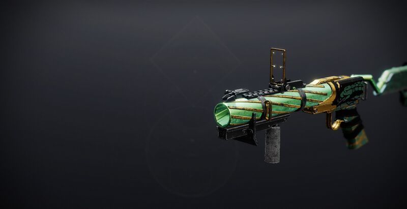 This image is a screenshot of a weapon from the Destiny series of first-person shooter video games developed by Bungie Studios and published by Bungie or Activision. It falls under the screenshot category for a copyrighted computer game or video game, and the copyright for it is most likely held by the company that developed the game. It is believed that the use of a limited number of web-resolution screenshots: