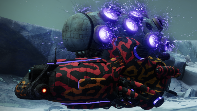 This image is a screenshot of a vehicle from the Destiny series of first-person shooter video games developed by Bungie Studios and published by Bungie or Activision. It falls under the screenshot category for a copyrighted computer game or video game, and the copyright for it is most likely held by the company that developed the game. It is believed that the use of a limited number of web-resolution screenshots:
