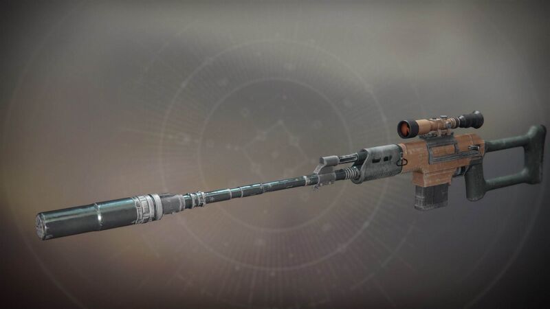 This image is a screenshot of a weapon from the Destiny series of first-person shooter video games developed by Bungie Studios and published by Bungie or Activision. It falls under the screenshot category for a copyrighted computer game or video game, and the copyright for it is most likely held by the company that developed the game. It is believed that the use of a limited number of web-resolution screenshots: