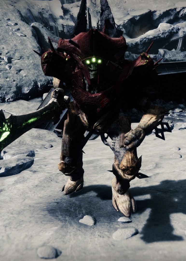 This image is a screenshot of a character or AI unit from the Destiny series of first-person shooter video games developed by Bungie Studios and published by Bungie or Activision. It falls under the screenshot category for a copyrighted computer game or video game, and the copyright for it is most likely held by the company that developed the game. It is believed that the use of a limited number of web-resolution screenshots: