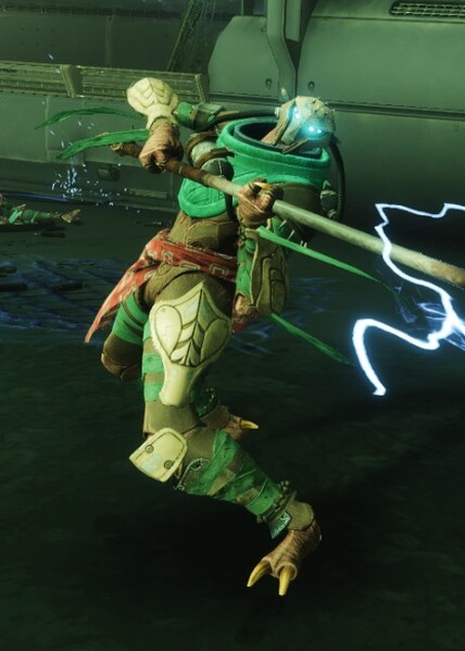 This image is a screenshot of a character or AI unit from the Destiny series of first-person shooter video games developed by Bungie Studios and published by Bungie or Activision. It falls under the screenshot category for a copyrighted computer game or video game, and the copyright for it is most likely held by the company that developed the game. It is believed that the use of a limited number of web-resolution screenshots: