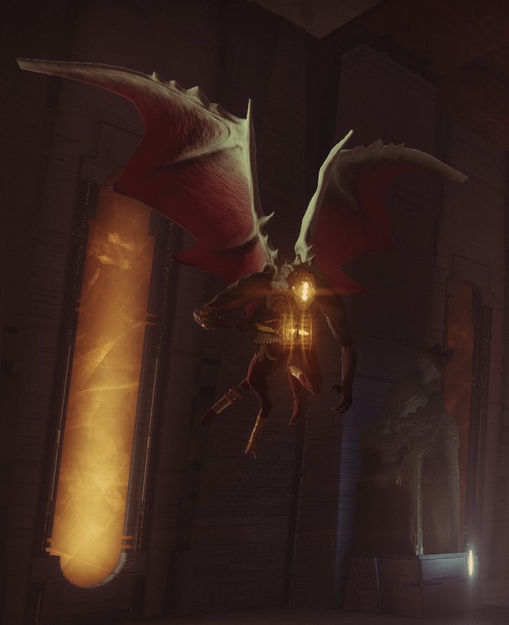This image is a screenshot of a character or AI unit from the Destiny series of first-person shooter video games developed by Bungie Studios and published by Bungie or Activision. It falls under the screenshot category for a copyrighted computer game or video game, and the copyright for it is most likely held by the company that developed the game. It is believed that the use of a limited number of web-resolution screenshots:
