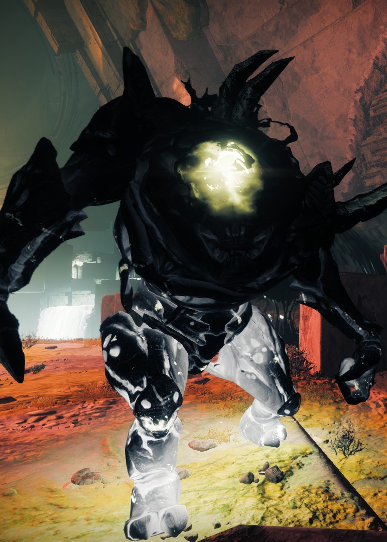 This image is a screenshot of a character or AI unit from the Destiny series of first-person shooter video games developed by Bungie Studios and published by Bungie or Activision. It falls under the screenshot category for a copyrighted computer game or video game, and the copyright for it is most likely held by the company that developed the game. It is believed that the use of a limited number of web-resolution screenshots:
