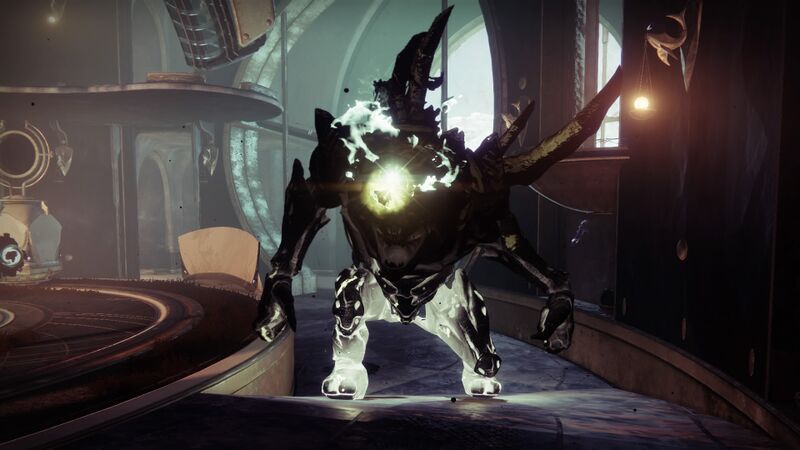 This image is a screenshot of a character or AI unit from the Destiny series of first-person shooter video games developed by Bungie Studios and published by Bungie or Activision. It falls under the screenshot category for a copyrighted computer game or video game, and the copyright for it is most likely held by the company that developed the game. It is believed that the use of a limited number of web-resolution screenshots: