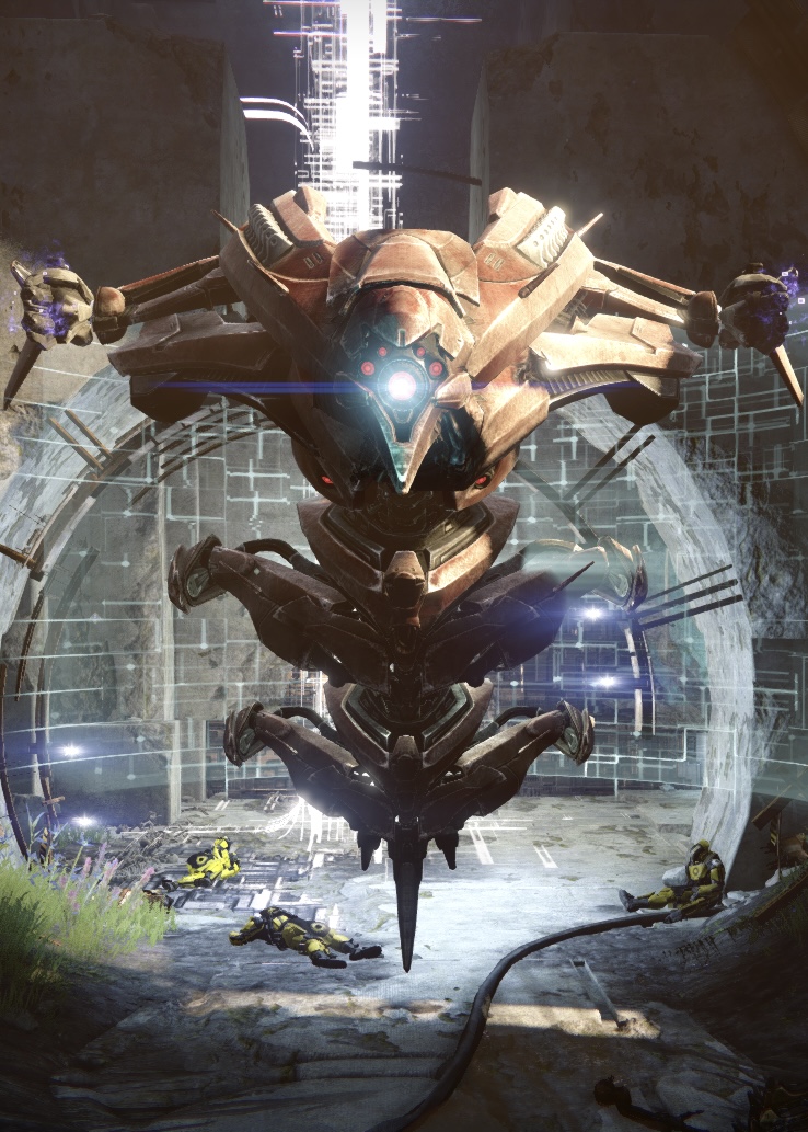 This image is a screenshot of a character or AI unit from the Destiny series of first-person shooter video games developed by Bungie Studios and published by Bungie or Activision. It falls under the screenshot category for a copyrighted computer game or video game, and the copyright for it is most likely held by the company that developed the game. It is believed that the use of a limited number of web-resolution screenshots: