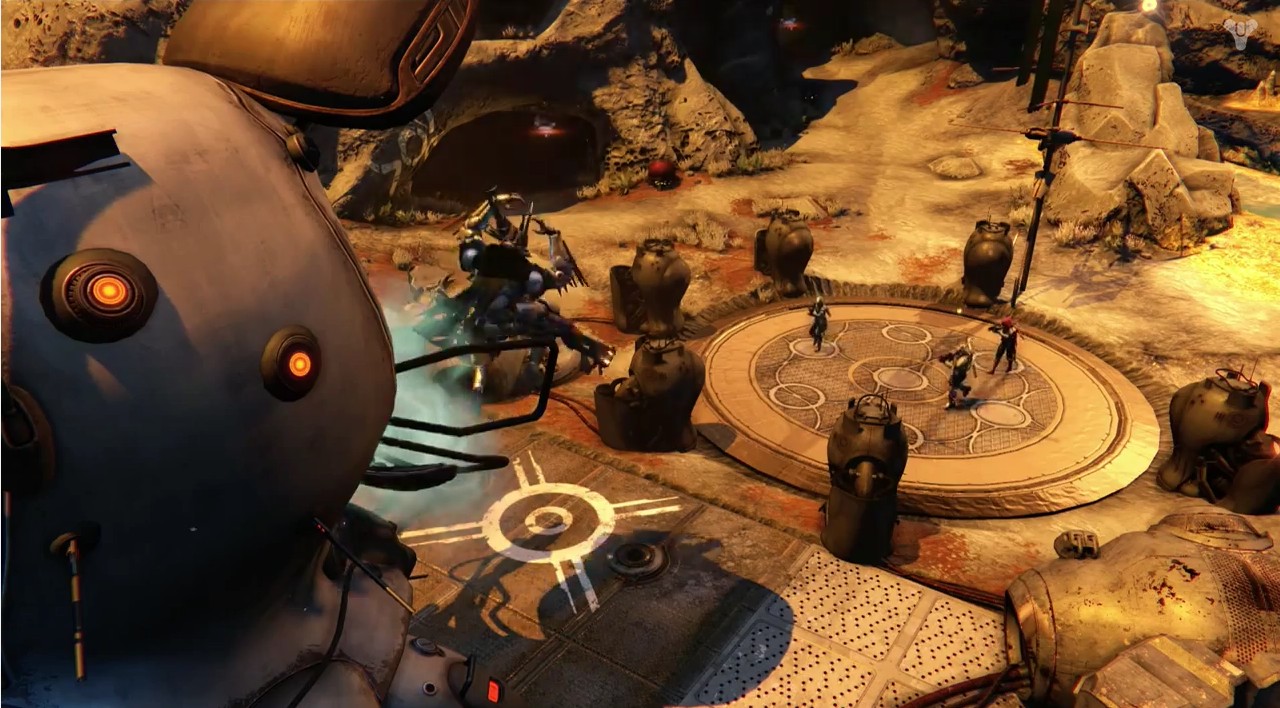 This image is a screenshot of a character or AI unit from the Destiny series of first-person shooter video games developed by Bungie Studios and published by Bungie or Activision. It falls under the screenshot category for a copyrighted computer game or video game, and the copyright for it is most likely held by the company that developed the game. It is believed that the use of a limited number of web-resolution screenshots: