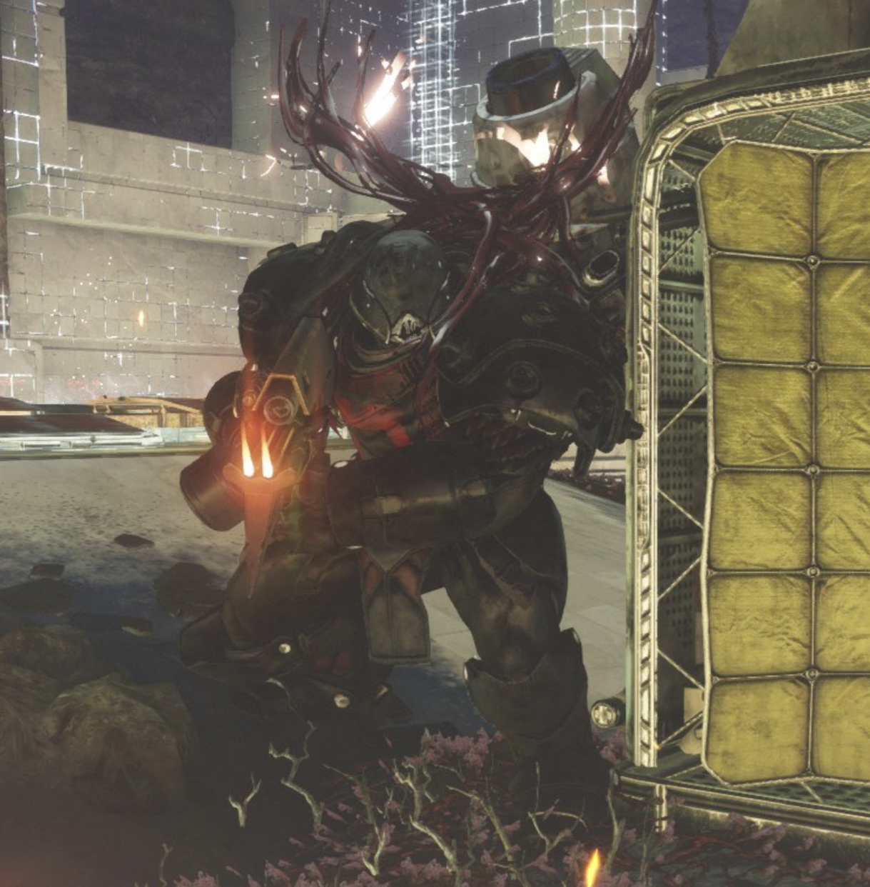 This image is a screenshot of a character or AI unit from the Destiny series of first-person shooter video games developed by Bungie Studios and published by Bungie or Activision. It falls under the screenshot category for a copyrighted computer game or video game, and the copyright for it is most likely held by the company that developed the game. It is believed that the use of a limited number of web-resolution screenshots: