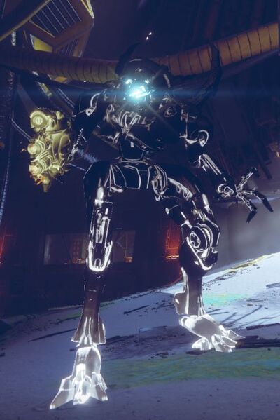 This image is a screenshot of a character or AI unit from the Destiny series of first-person shooter video games developed by Bungie Studios and published by Bungie or Activision. It falls under the screenshot category for a copyrighted computer game or video game, and the copyright for it is most likely held by the company that developed the game. It is believed that the use of a limited number of web-resolution screenshots: