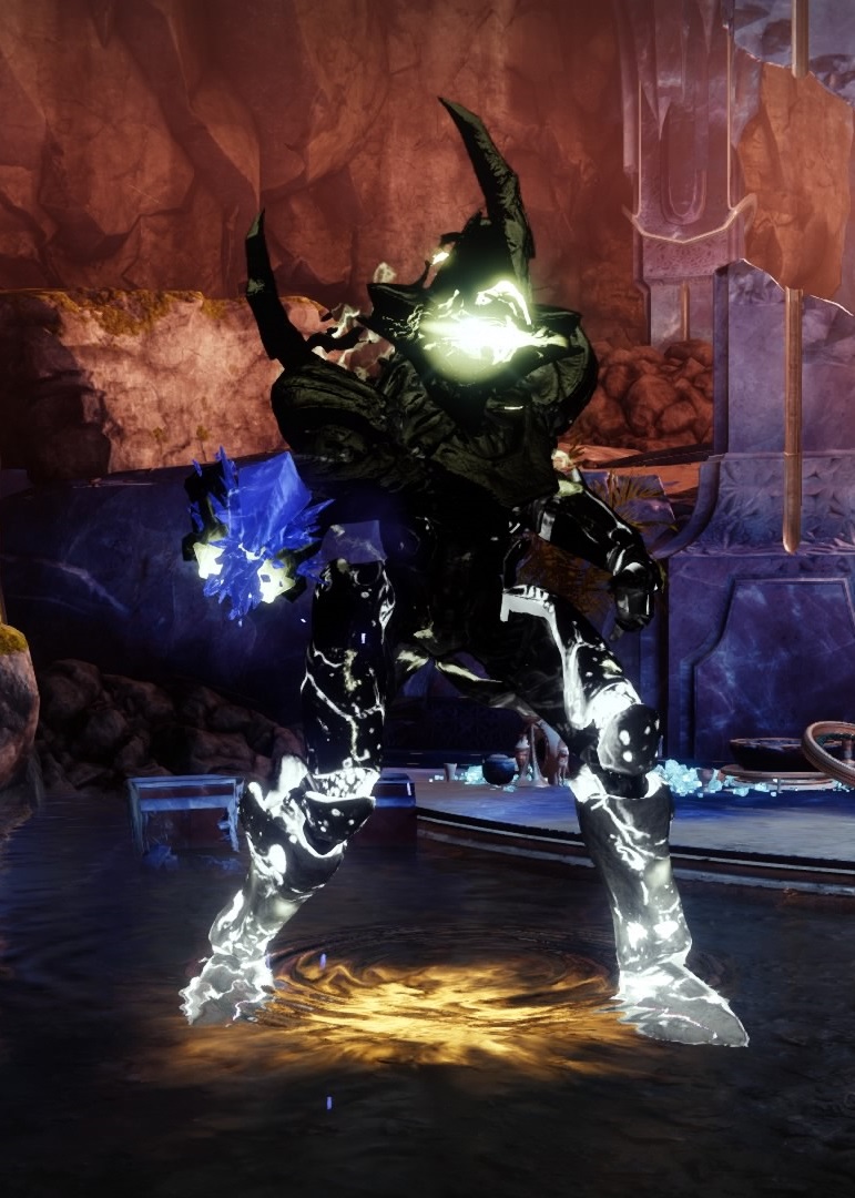 This image is a screenshot of a character or AI unit from the Destiny series of first-person shooter video games developed by Bungie Studios and published by Bungie or Activision. It falls under the screenshot category for a copyrighted computer game or video game, and the copyright for it is most likely held by the company that developed the game. It is believed that the use of a limited number of web-resolution screenshots: