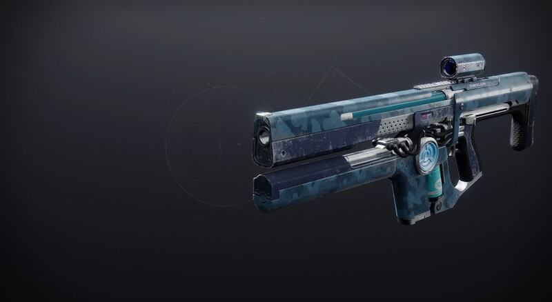 This image is a screenshot of a weapon from the Destiny series of first-person shooter video games developed by Bungie Studios and published by Bungie or Activision. It falls under the screenshot category for a copyrighted computer game or video game, and the copyright for it is most likely held by the company that developed the game. It is believed that the use of a limited number of web-resolution screenshots:
