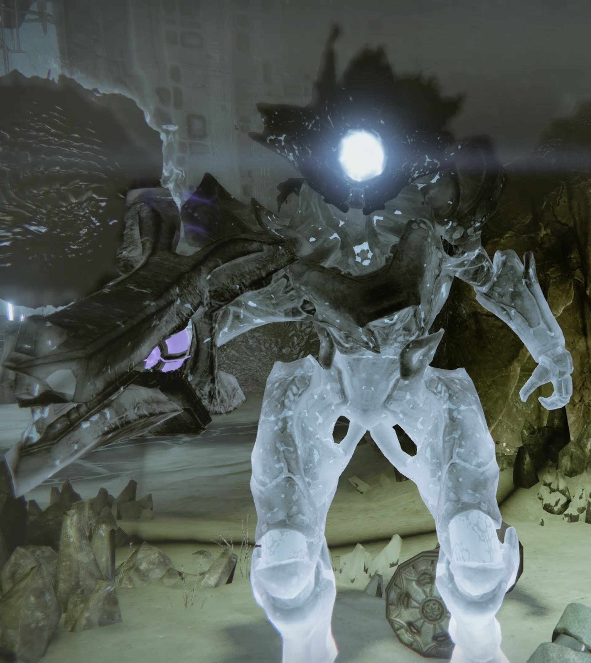 This image is a screenshot of a character or AI unit from the Destiny series of first-person shooter video games developed by Bungie Studios and published by Bungie or Activision. It falls under the screenshot category for a copyrighted computer game or video game, and the copyright for it is most likely held by the company that developed the game. It is believed that the use of a limited number of web-resolution screenshots: