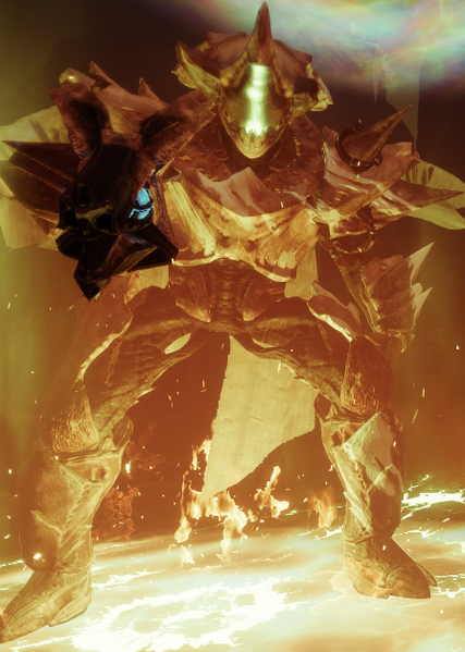 This image is a screenshot of a character or AI unit from the Destiny series of first-person shooter video games developed by Bungie Studios and published by Bungie or Activision. It falls under the screenshot category for a copyrighted computer game or video game, and the copyright for it is most likely held by the company that developed the game. It is believed that the use of a limited number of web-resolution screenshots: