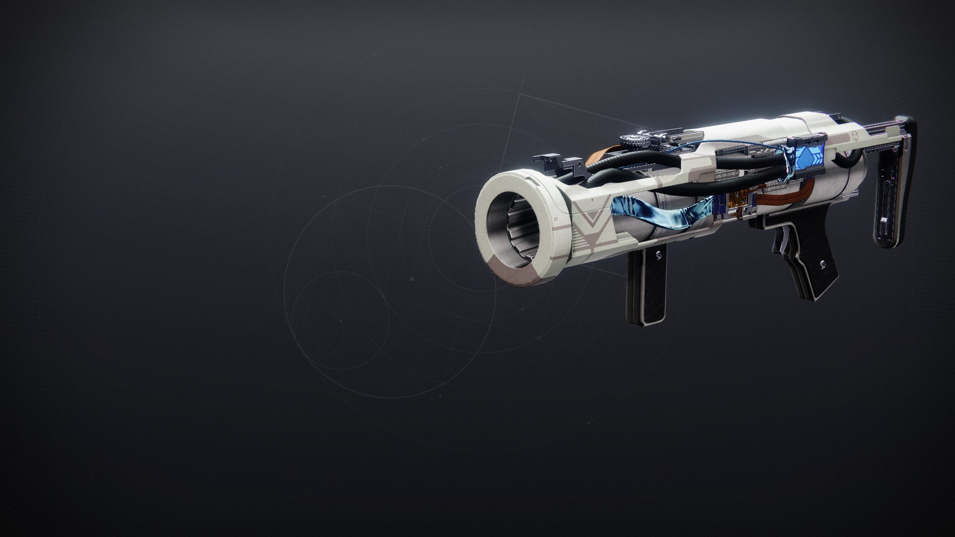 This image is a screenshot of a weapon from the Destiny series of first-person shooter video games developed by Bungie Studios and published by Bungie or Activision. It falls under the screenshot category for a copyrighted computer game or video game, and the copyright for it is most likely held by the company that developed the game. It is believed that the use of a limited number of web-resolution screenshots: