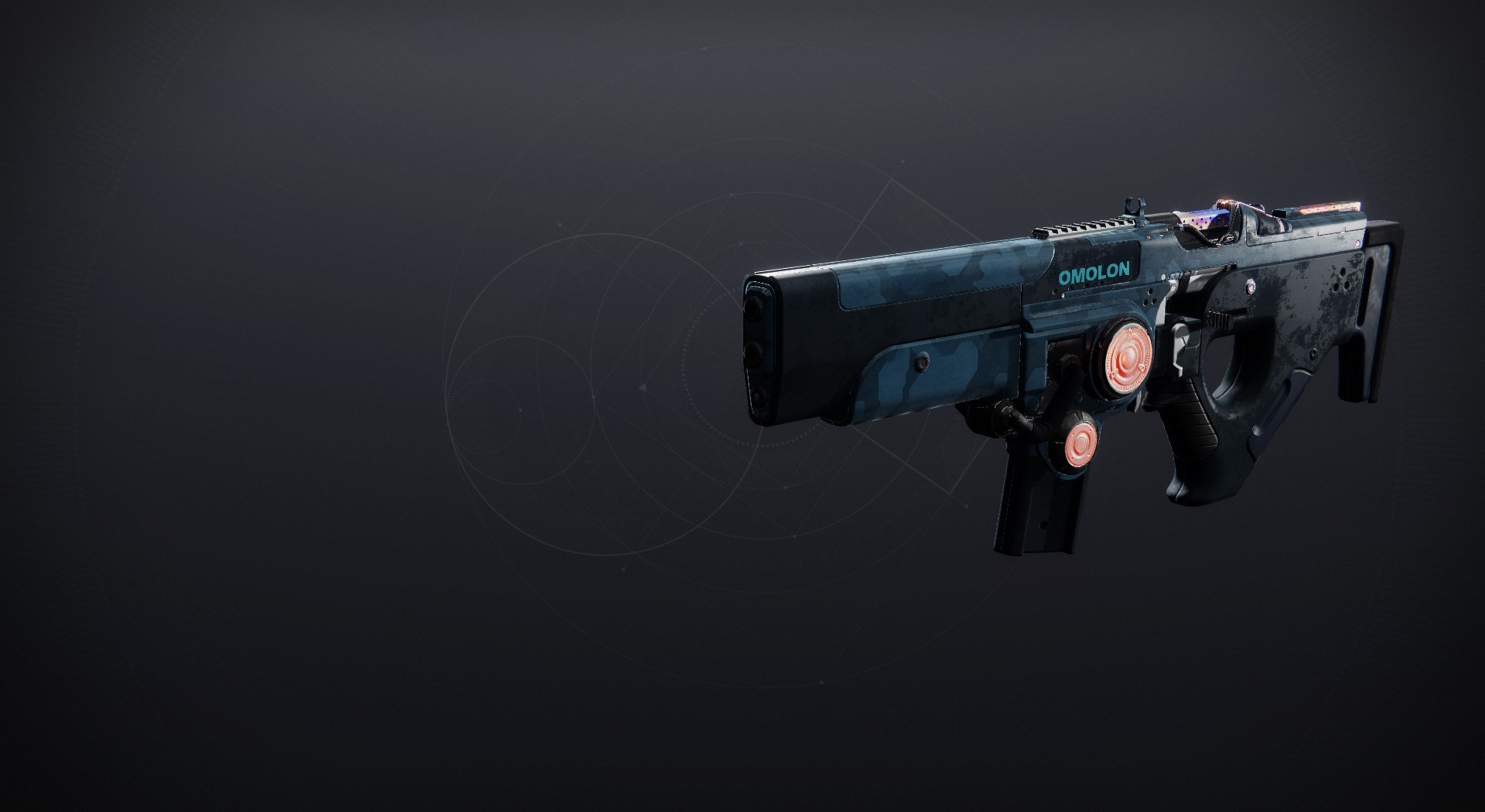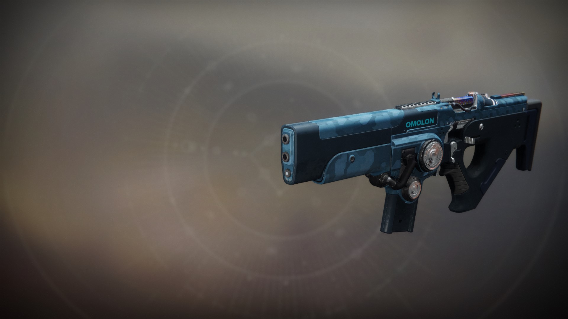 This image is a screenshot of a weapon from the Destiny series of first-person shooter video games developed by Bungie Studios and published by Bungie or Activision. It falls under the screenshot category for a copyrighted computer game or video game, and the copyright for it is most likely held by the company that developed the game. It is believed that the use of a limited number of web-resolution screenshots: