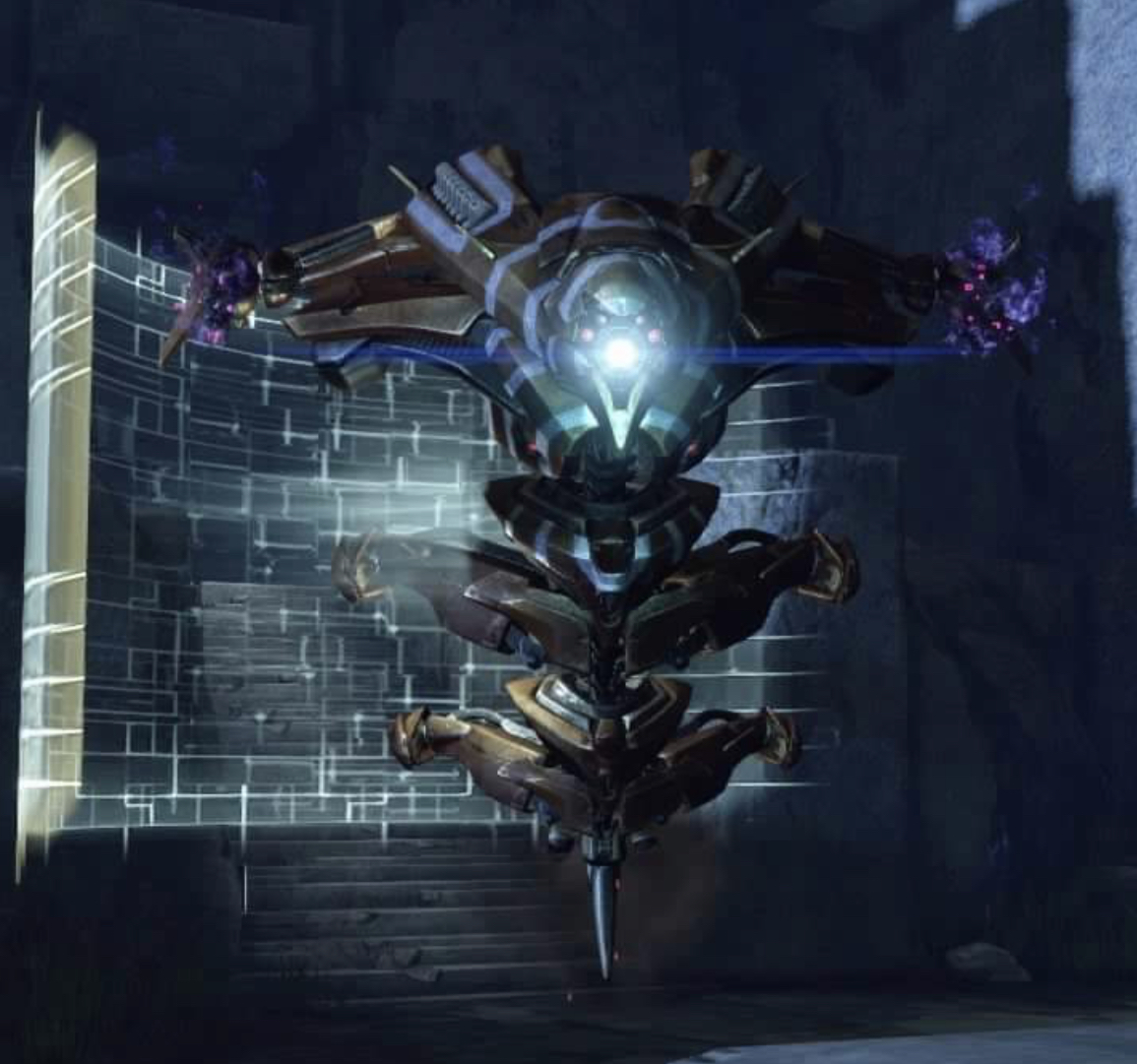 This image is a screenshot of a character or AI unit from the Destiny series of first-person shooter video games developed by Bungie Studios and published by Bungie or Activision. It falls under the screenshot category for a copyrighted computer game or video game, and the copyright for it is most likely held by the company that developed the game. It is believed that the use of a limited number of web-resolution screenshots: