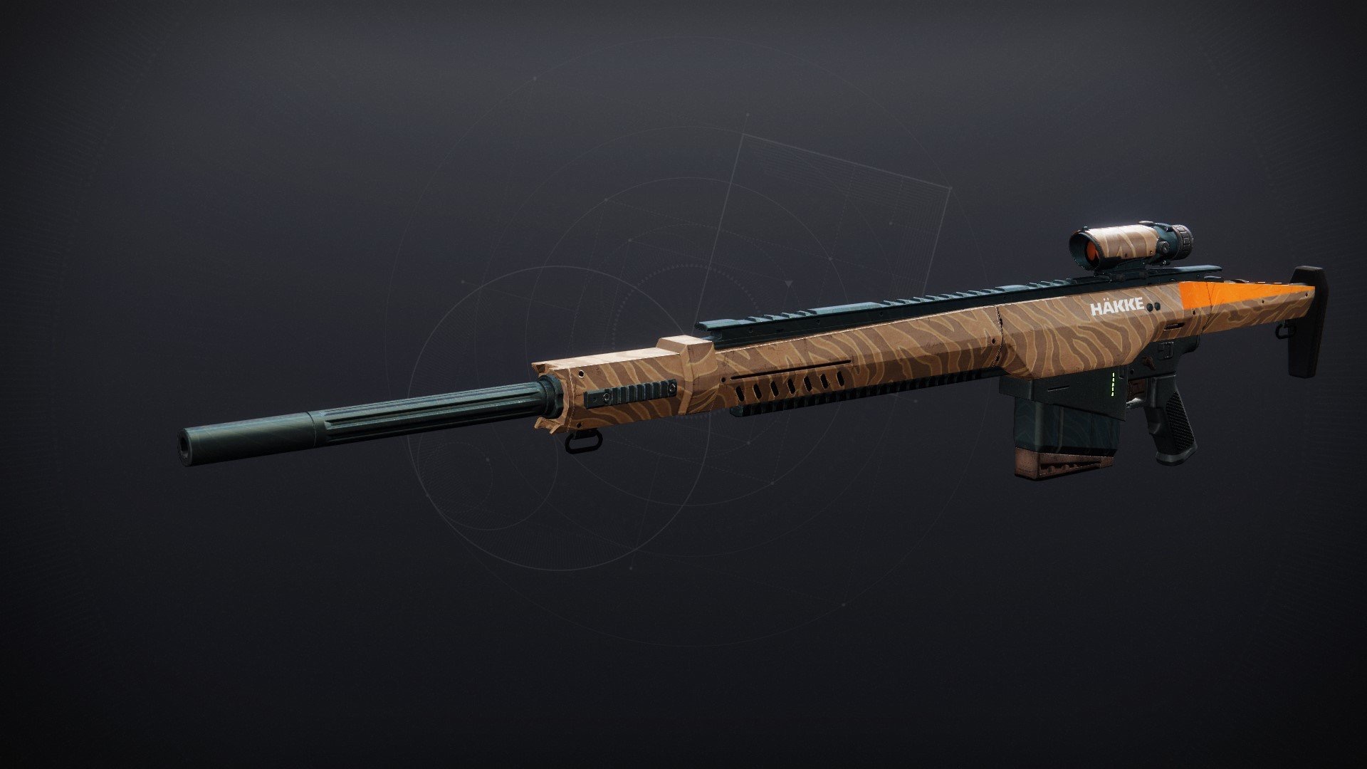 This image is a screenshot of a weapon from the Destiny series of first-person shooter video games developed by Bungie Studios and published by Bungie or Activision. It falls under the screenshot category for a copyrighted computer game or video game, and the copyright for it is most likely held by the company that developed the game. It is believed that the use of a limited number of web-resolution screenshots:
