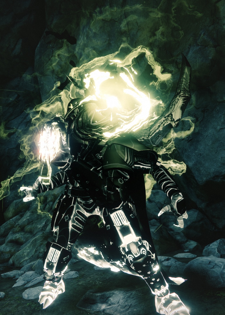 This image is a screenshot of a character or AI unit from the Destiny series of first-person shooter video games developed by Bungie Studios and published by Bungie or Activision. It falls under the screenshot category for a copyrighted computer game or video game, and the copyright for it is most likely held by the company that developed the game. It is believed that the use of a limited number of web-resolution screenshots: