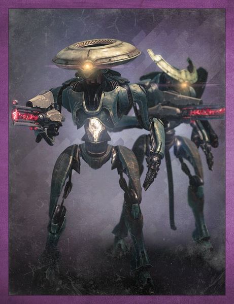This image is a screenshot of a character or AI unit from the Destiny series of first-person shooter video games developed by Bungie Studios and published by Bungie or Activision. It falls under the screenshot category for a copyrighted computer game or video game, and the copyright for it is most likely held by the company that developed the game. It is believed that the use of a limited number of web-resolution screenshots: