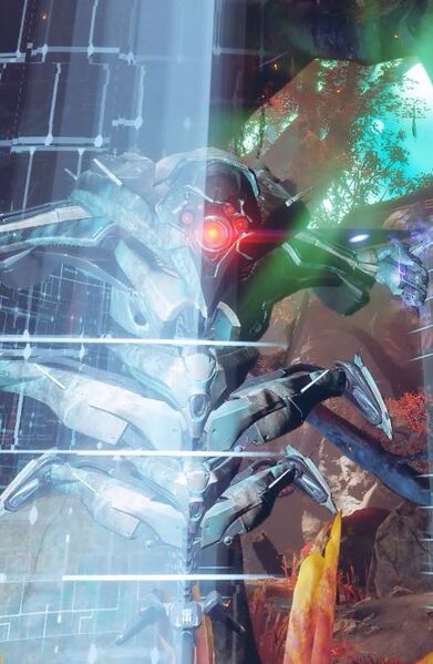 This image is a screenshot of a character or AI unit from the Destiny series of first-person shooter video games developed by Bungie Studios and published by Bungie or Activision. It falls under the screenshot category for a copyrighted computer game or video game, and the copyright for it is most likely held by the company that developed the game. It is believed that the use of a limited number of web-resolution screenshots: