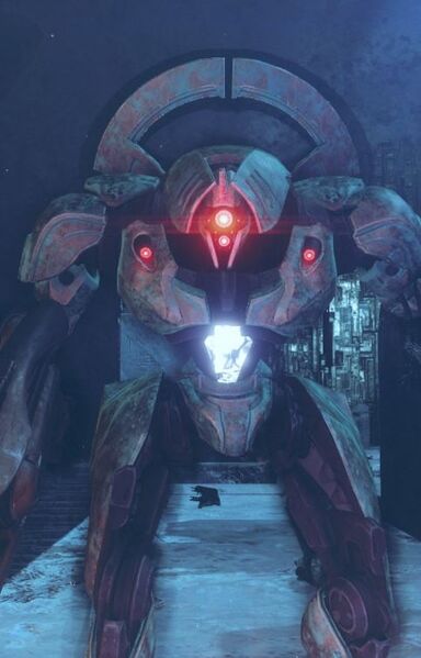 This image is a screenshot of a character or AI unit from the Destiny series of first-person shooter video games developed by Bungie Studios and published by Bungie or Activision. It falls under the screenshot category for a copyrighted computer game or video game, and the copyright for it is most likely held by the company that developed the game. It is believed that the use of a limited number of web-resolution screenshots: