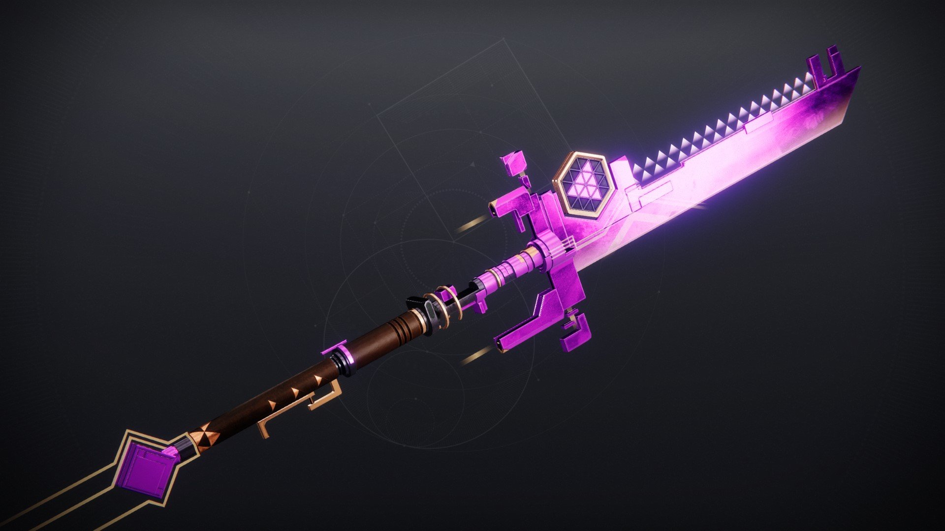 This image is a screenshot of a weapon from the Destiny series of first-person shooter video games developed by Bungie Studios and published by Bungie or Activision. It falls under the screenshot category for a copyrighted computer game or video game, and the copyright for it is most likely held by the company that developed the game. It is believed that the use of a limited number of web-resolution screenshots:
