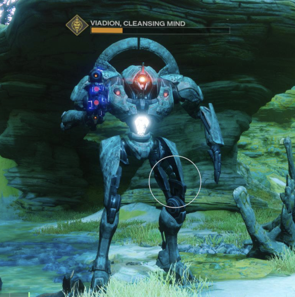This image is a screenshot of a character or AI unit from the Destiny series of first-person shooter video games developed by Bungie Studios and published by Bungie or Activision. It falls under the screenshot category for a copyrighted computer game or video game, and the copyright for it is most likely held by the company that developed the game. It is believed that the use of a limited number of web-resolution screenshots: