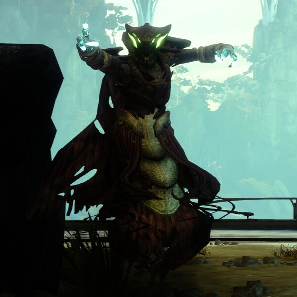 This image is a screenshot of a character or AI unit from the Destiny series of first-person shooter video games developed by Bungie Studios and published by Bungie or Activision. It falls under the screenshot category for a copyrighted computer game or video game, and the copyright for it is most likely held by the company that developed the game. It is believed that the use of a limited number of web-resolution screenshots: