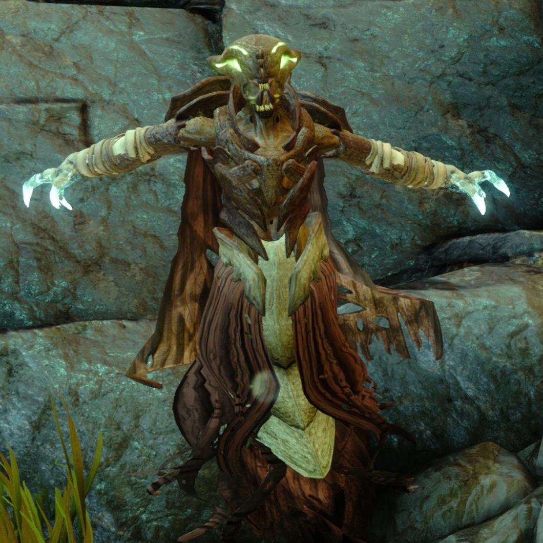 This image is a screenshot of a character or AI unit from the Destiny series of first-person shooter video games developed by Bungie Studios and published by Bungie or Activision. It falls under the screenshot category for a copyrighted computer game or video game, and the copyright for it is most likely held by the company that developed the game. It is believed that the use of a limited number of web-resolution screenshots: