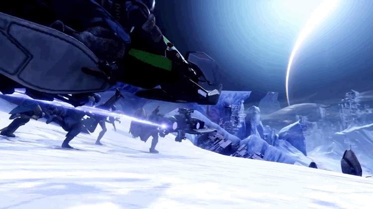 This file is an animated game capture from the Destiny series of video games developed by Bungie, LLC. It falls under the game capture category for a copyrighted computer game or video game, and the copyright for it is most likely held by the company that developed the game. It is believed that the use of a limited number of web-resolution game captures
