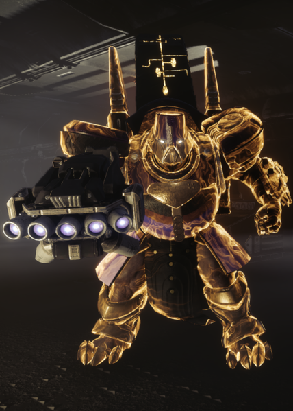 This image is a screenshot of a character or AI unit from the Destiny series of first-person shooter video games developed by Bungie Studios and published by Bungie or Activision. It falls under the screenshot category for a copyrighted computer game or video game, and the copyright for it is most likely held by the company that developed the game. It is believed that the use of a limited number of web-resolution screenshots: